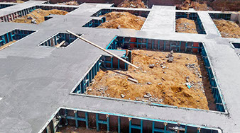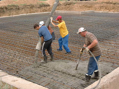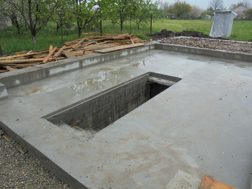 Была подготовлена опалубка, проложен армирующий каркас. После всех подготовительных работ залили раствором бетонной смеси марки М400