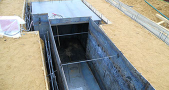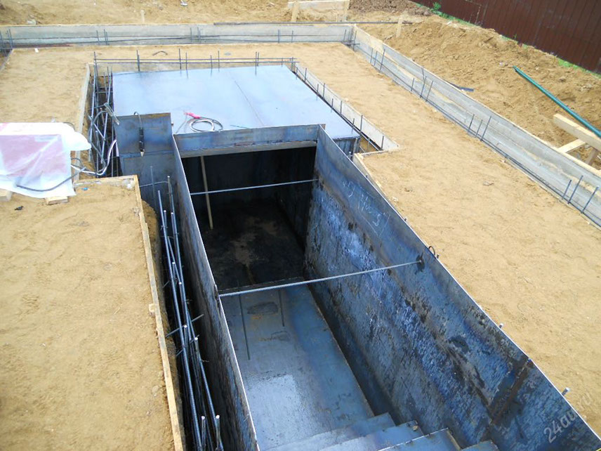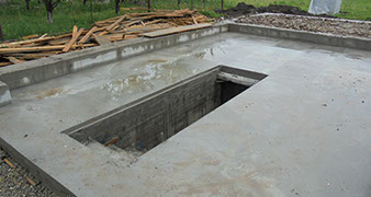Была подготовлена опалубка, проложен армирующий каркас. После всех подготовительных работ залили раствором бетонной смеси марки М400